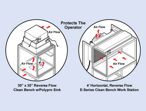 In vertical laminar flow cabinets, air flows from the top of the cabinet down to the work surface. This type is particularly effective in protecting the user and the environment from contaminants generated within the cabinet.